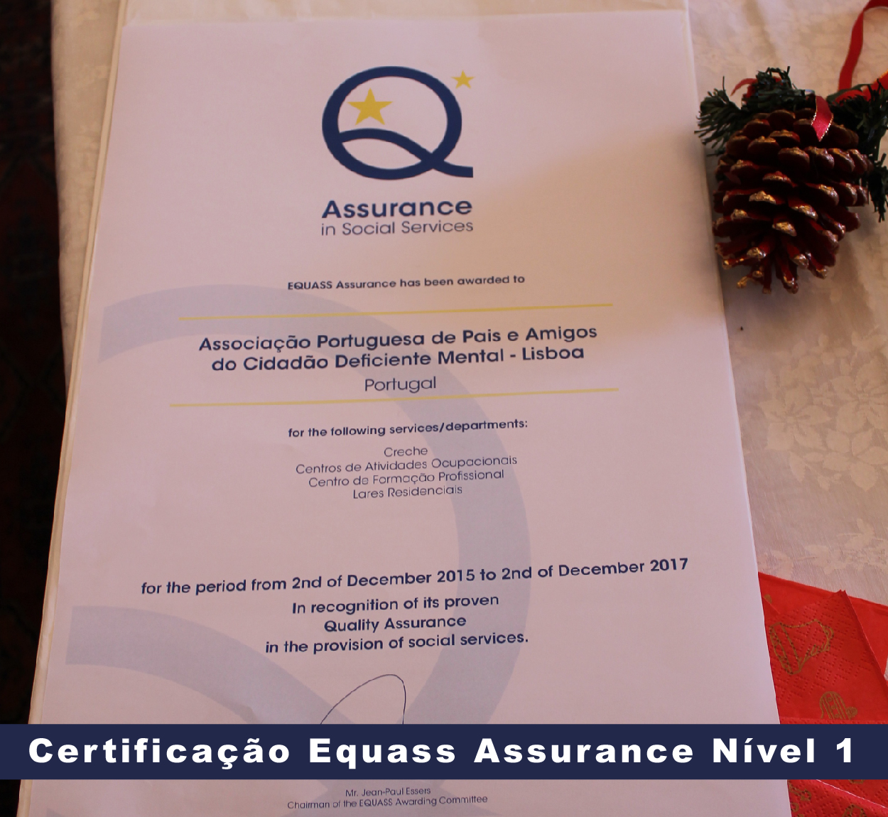 Decorreu na passada quarta-feira, na Sede da APPACDM de Lisboa, a entrega dos certificados de qualidade do referencial Equass Assurance Nível 1 - Certificação da Qualidade dos Serviços Sociais, que alcançamos com sucesso, no seguimento da auditoria realizada à APPACDM de Lisboa.